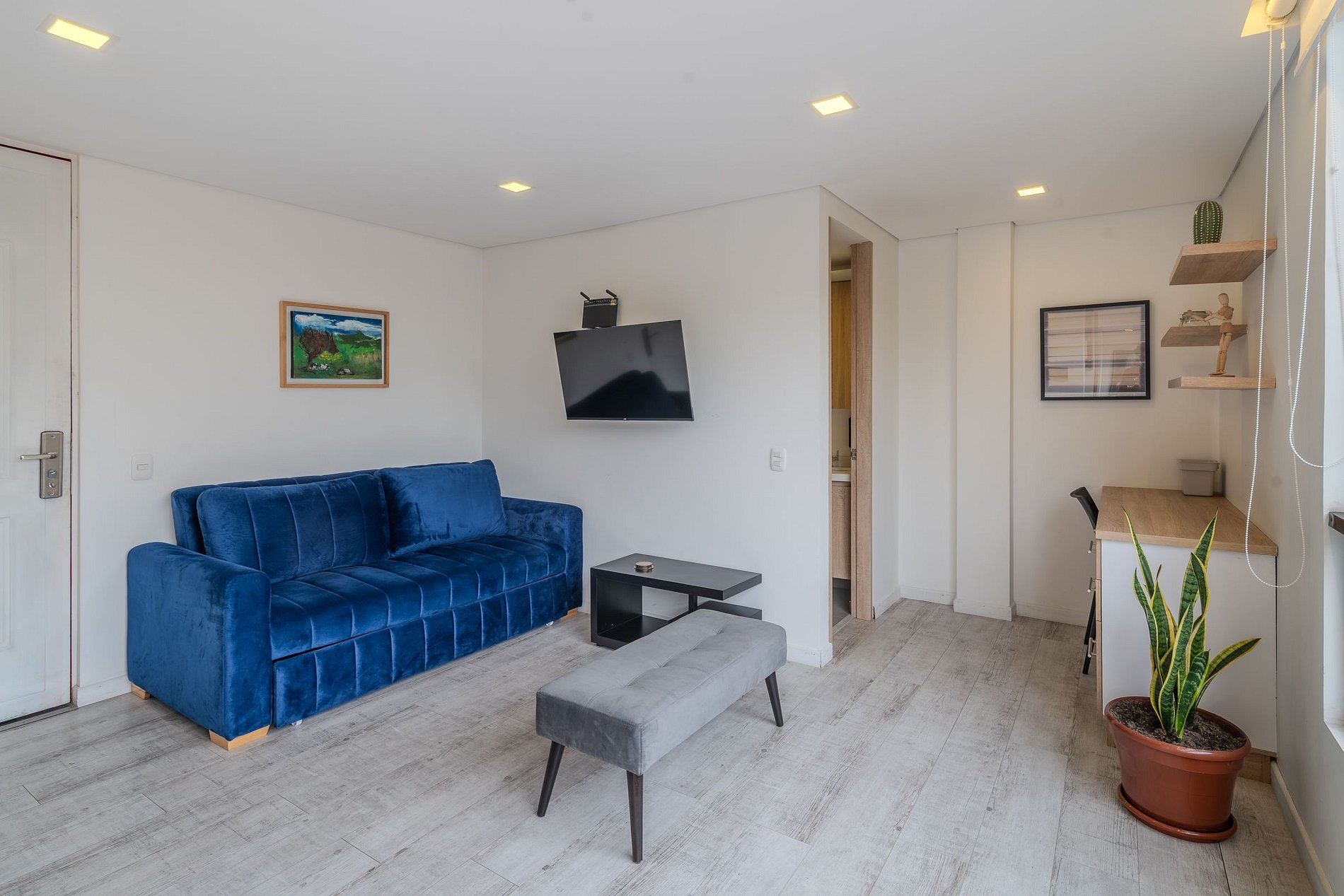 Disfruta de un apartaestudio cómodo, bien distribuido y lleno de luz, ideal para descansar, trabajar o explorar la ciudad. Cuenta con una habitación con cama doble y baño privado, además de una sala con sofá cama doble, baño social y una cocina tipo americana totalmente equipada.