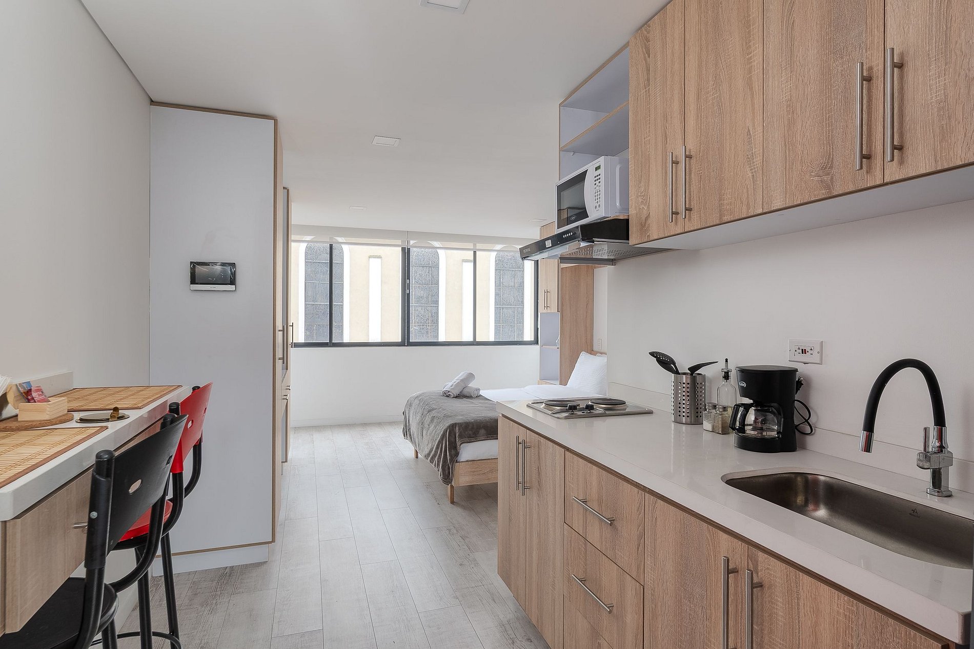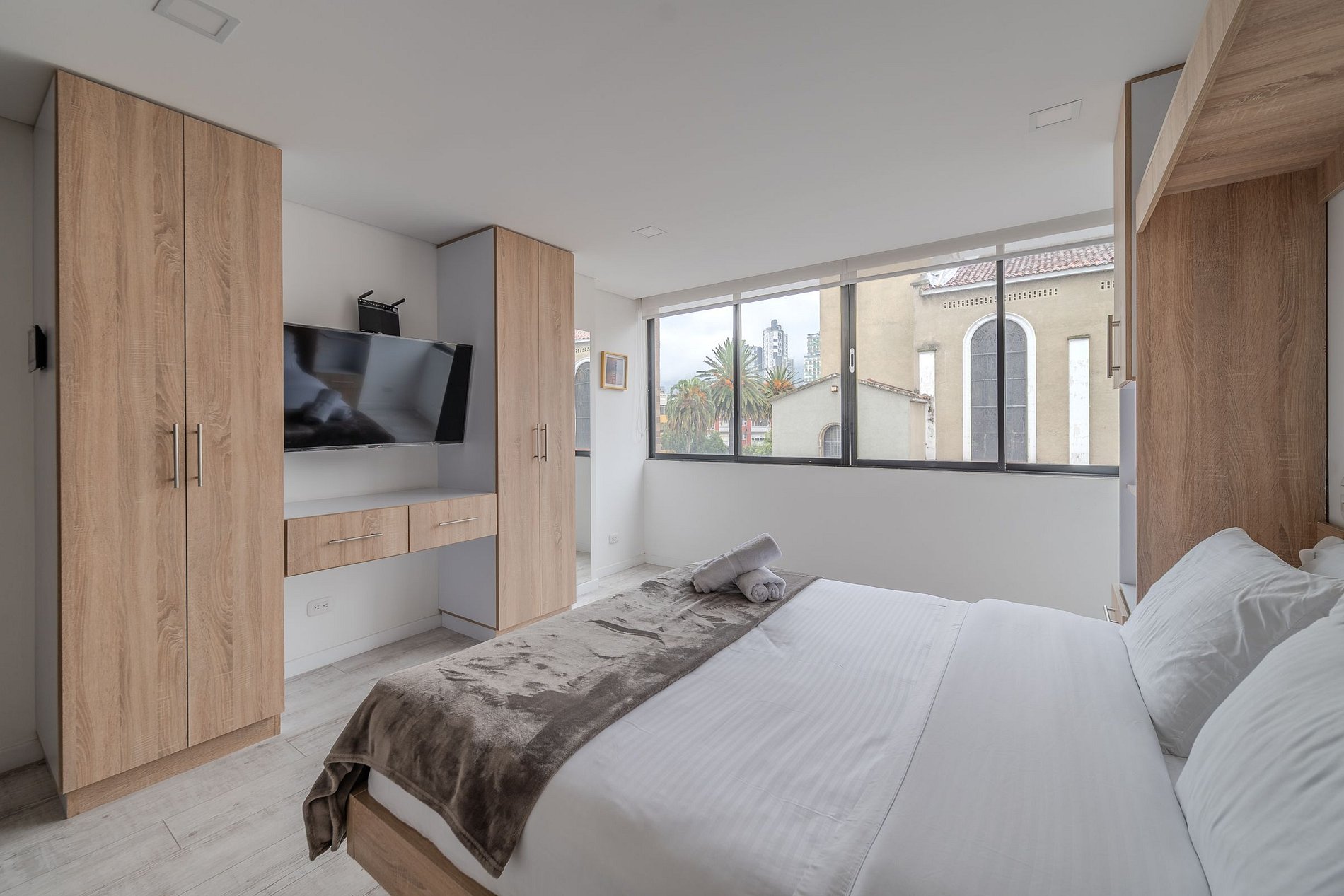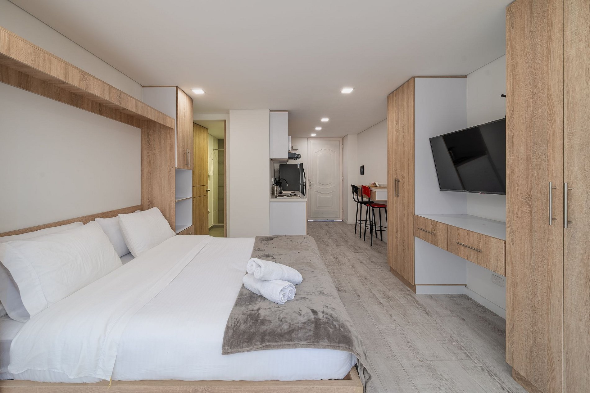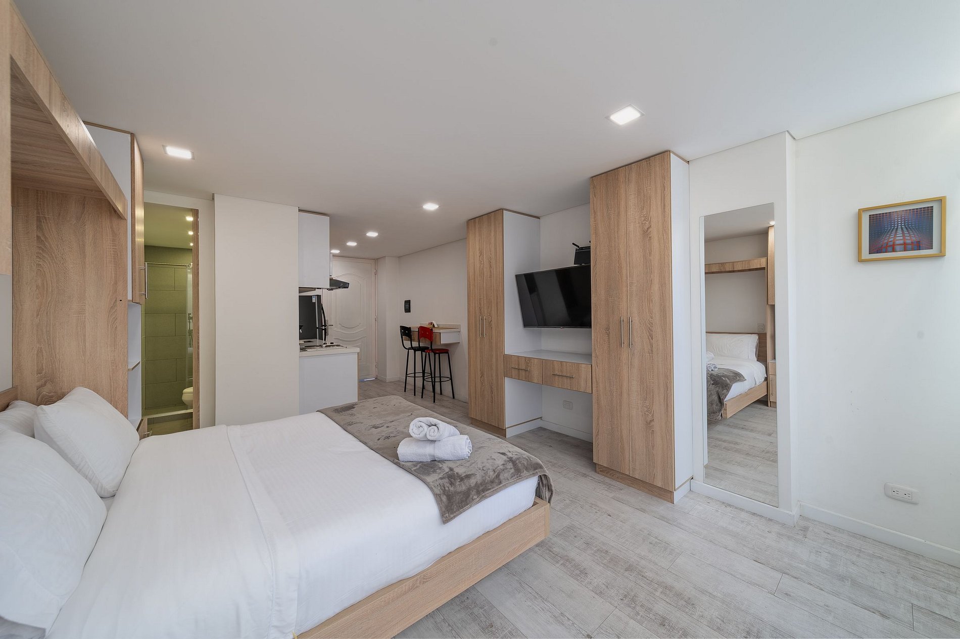 Atardecer 57 x Ahead ofrece 11 aparta estudios modernos en el corazón de Teusaquillo, a minutos del Movistar Arena, El Campín y Chapinero. Ubicados en una zona estratégica con fácil acceso a transporte público, universidades, centros comerciales y restaurantes. Espacios cómodos y bien diseñados, ideales para viajeros, gestionados por un equipo profesional.