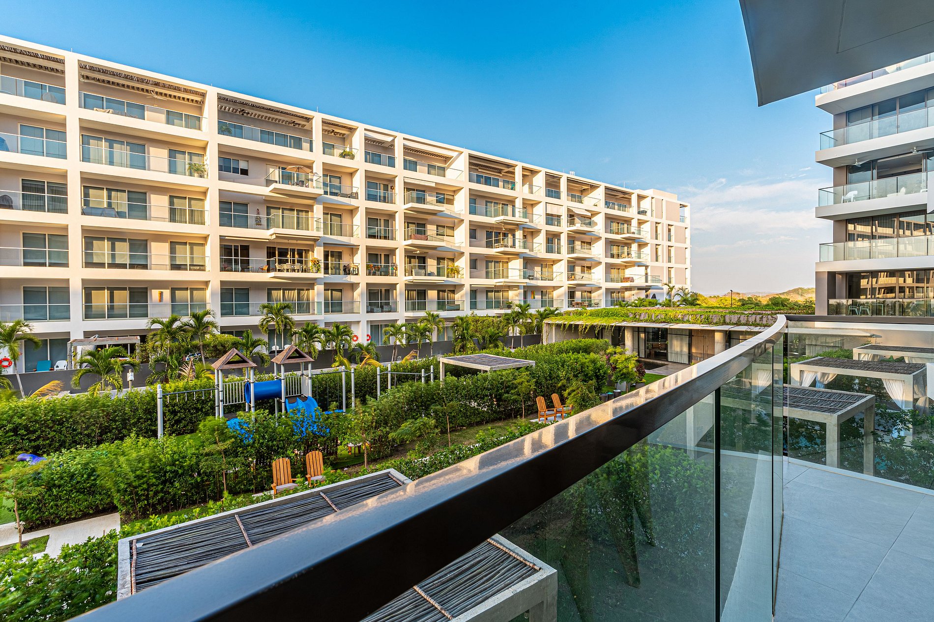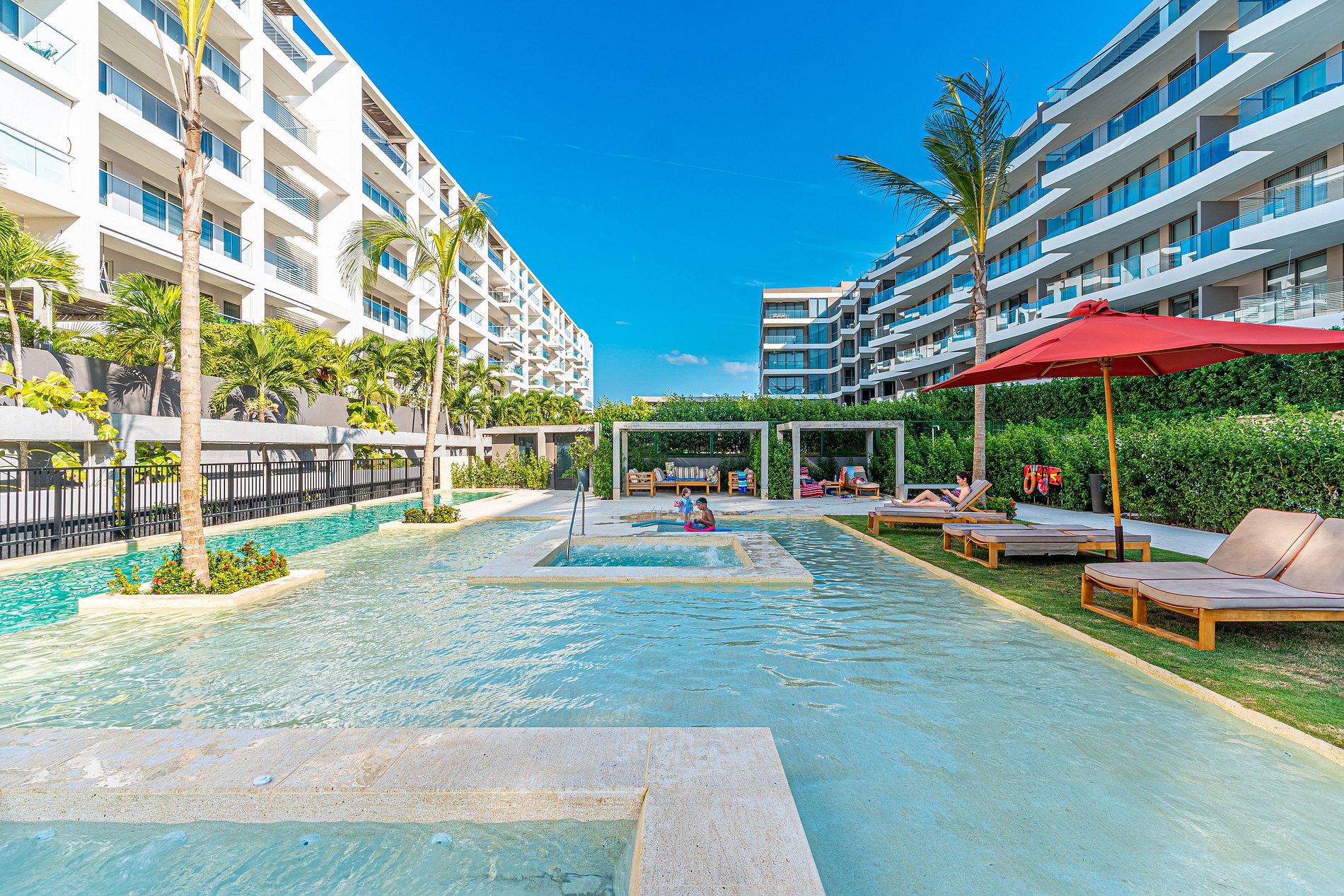Este impresionante edificio se encuentra al frente de la playa y tiene salida directa. Los huéspedes podrán disfrutar de las zonas sociales del condominio. Piscina, jacuzzi, parque infantil, gimnasio, parqueadero, seguridad 24/7. Para el uso de carpas y sillas de playa tiene un costo adicional de $20.000 COP el alquiler.